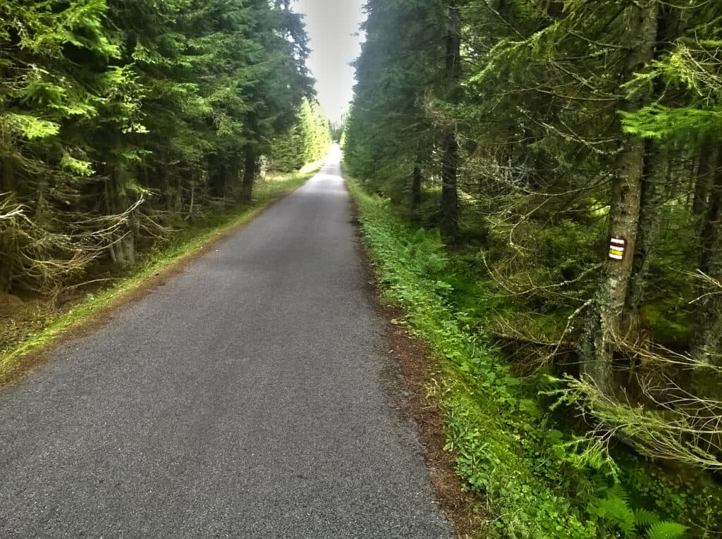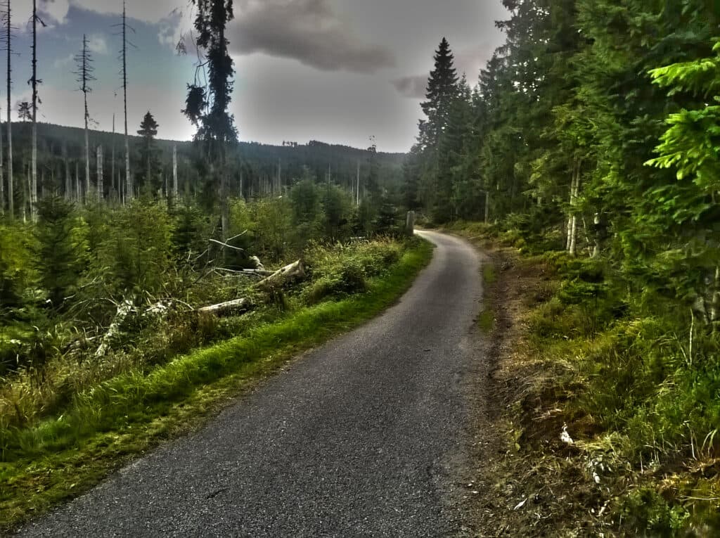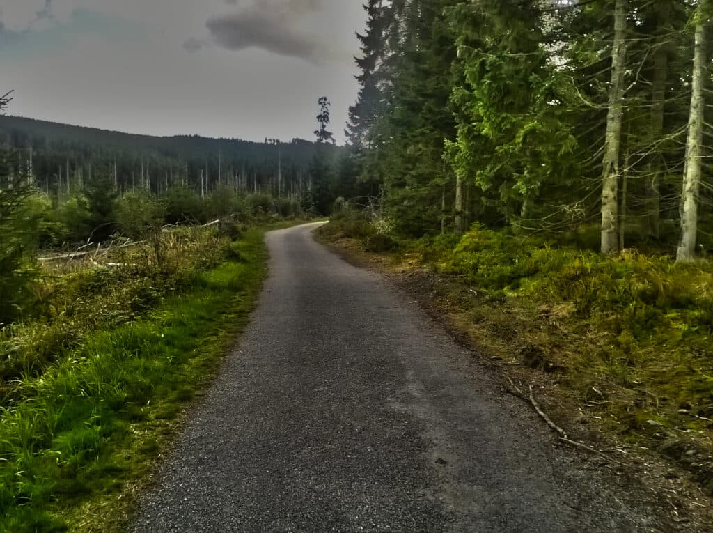 Z vrcholu se spustíme dolů po červeně značené cyklotrase. U Ptačí nádrže odbočíme doprava na cyklotrasu č. 1042 – Filipohuťská cesta. Tato stezka nás provede přes malebné vesničky Filipovu Huť a Korýtko, kde si můžeme prohlédnout typické šumavské stavby a zastavit se v některé z hospůdek na občerstvení. Zvlněným profilem dojedeme do Horské Kvildy, odkud už nás čeká jen pohodová jízda po rovině zpátky do Kvildy. Na cestě si můžeme udělat pauzu u pramene Vltavy, u Jezerní slati nebo na Rysím a Jelením výběhu, kde si můžeme prohlédnout tyto vznešené šelmy.