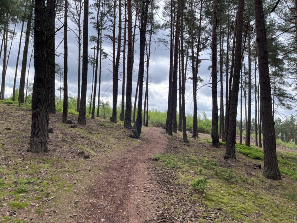 Následně se dostaneme do lesní části, kde se charakter cesty mírně změní. Čekají vás zpevněné lesní cesty, které jsou místy lehce techničtější. Sem tam narazíte na vystouplé kořeny, které dodají výletu na zábavnosti a prověří vaši schopnost překonávat drobné terénní nerovnosti. Není třeba se obávat, jedná se o zvládnutelné překážky, které zpestří jízdu a udrží vaši pozornost. Vrcholem celého výletu je bezesporu vyhlídka nedaleko Krkavce, odkud se vám naskytne úchvatný pohled na Plzeň jako na dlani. Z této vyhlídky uvidíte město v celé jeho kráse, s jeho dominantami, jako je katedrála svatého Bartoloměje, a rozprostírající se krajinou. Po vychutnání si nádherného výhledu se můžete vydat zpět po místním trailovém úseku, který prověří vaši technickou zdatnost a nabídne adrenalinový zážitek. Následně trasa pokračuje po červené turistické značce, která vás provede kolem přírodní rezervace Petrovka, známé svými velkými vystouplými kořeny. Tyto kořeny dodají cestě další rozměr a prověří vaši technickou jízdu.